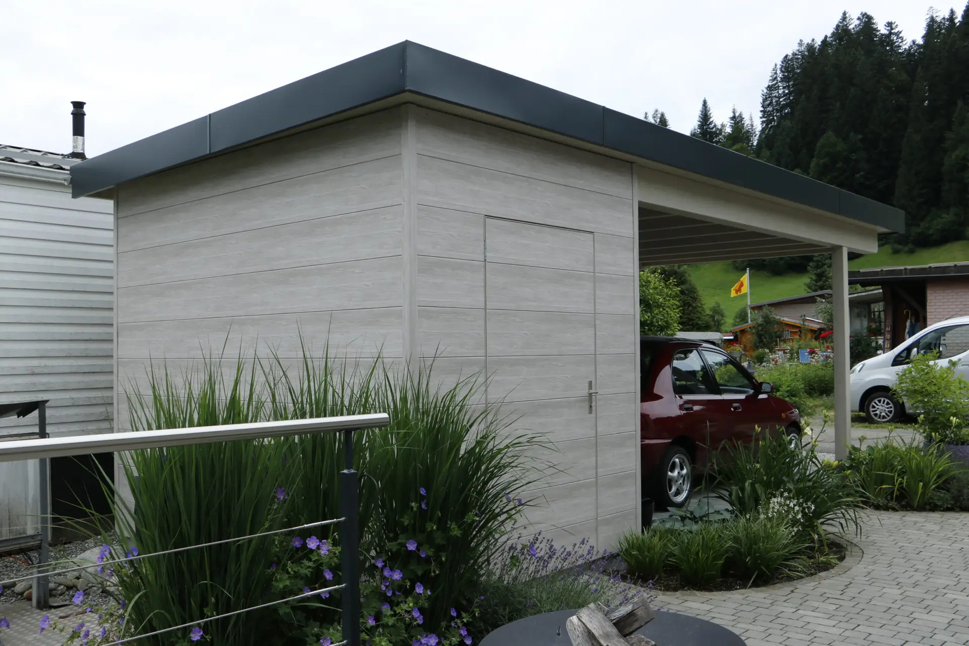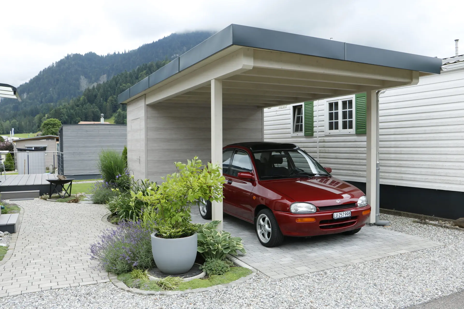 Carport mit Geräteraum, Terrasse